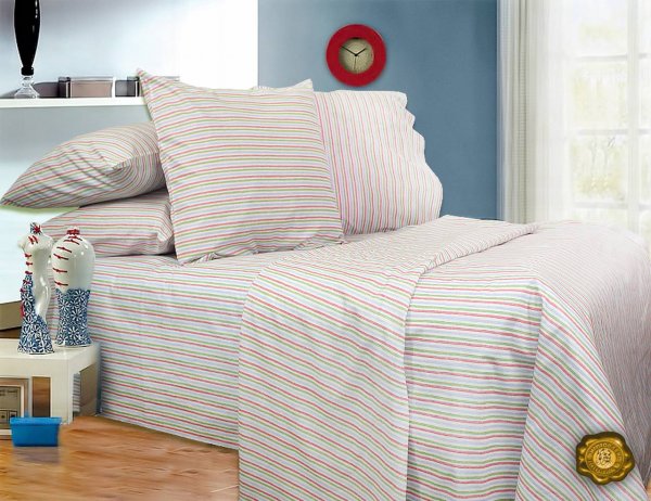 Материал: бязь, 100% хлопок. В комплект входит: Наволочка 70х70 - 2шт Пододеяльник 175х210 - 1шт Простынь 180х214 1шт Плотность 125 гр/м